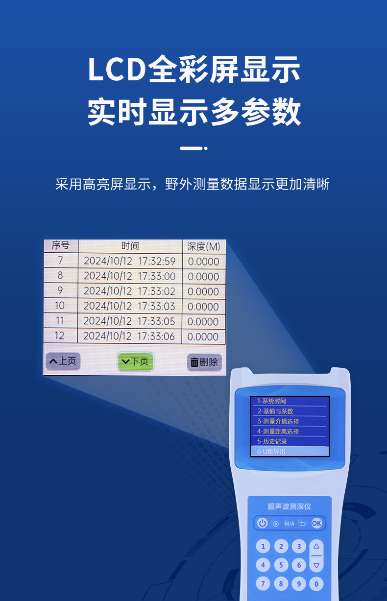 超聲波測深儀是測量水庫、湖泊、江河、淺海等水體的便攜式測深儀,它又稱為便攜式水深探深儀,便攜式測深儀。測深時將超聲波換能器置于水面或一定位置,利用超聲波在水中的固定聲速VC和超聲波發(fā)射到接收的時間T,儀器自動換算出水深H。
